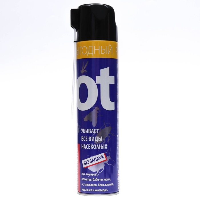 Универсальный аэрозоль Rubit - инсектицидное средство для уничтожения в помещениях летающих и нелетающих насекомых: мух, комаров, москитов, бабочек, моли, ос, а также тараканов, блох, клопов, муравьев и кожеедов.Преимущества:Быстродействующий;Универсальный;Длительный срок хранения;Без запаха.Предназначено для уничтожения в помещениях летающих и нелетающих насекомых. Действующее вещество - циперметрин, тетраметрин, пиперонилбутоксид.Внимание! Хранить отдельно от лекарств, пищевых продуктов и кормов для животных в сухом, прохладном месте, недоступном для детей и животных.Составциперметрин, тетраметрин, пиперонилбутоксид
