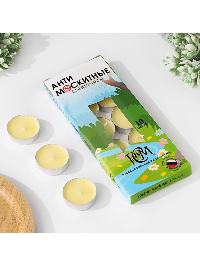 Защитите вечерний отдых от надоедливых насекомых! Набор антимоскитных свечей создаст уютную атмосферу и отпугнёт комаров без химических спреев. В упаковке — 10 ароматических свечей, каждая из которых работает как натуральный репеллент.
