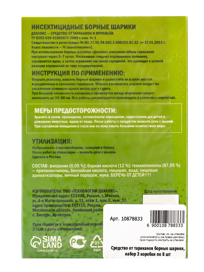 * Увеличенный объём для комплексной обработки: три коробки по 8 шариков хватает для одновременного размещения на кухне, в ванной, кладовых и других зонах риска. Запас средства обеспечивает защиту на несколько месяцев.