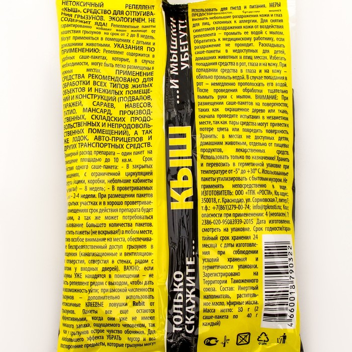 Репеллентные пакеты гарантированно избавят ваше жилище от нашествия грызунов на срок от 2 до 8 недель. Могут применяться в помещениях с детьми и домашними животными.