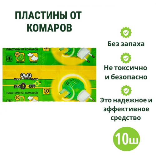 Средство инсектицидное "Пластины от комаров без запаха". Используется с универсальным электрофумигатором SuperBAT. Полное уничтожение комаров в закрытом помещении достигается, примерно, за 1 час. Одна пластина рассчитана на работу в течение 8-9 часов. При открытых форточках или окнах электрофумигатор с пластиной можно оставить включенным на всю ночь для уничтожения насекомых, залетающих в помещение.Способ применения: извлечь из упаковки пластину, поместить её на нагревательную поверхность электрофумигатора, включить его в электросеть (220 В). Средство начинает действовать через 10-15 минут после включения. Полное уничтожение комаров достигается примерно за 1 час. При открытых окнах или форточках электрофумигатор с пластиной можно оставить включенным на всю ночь для уничтожения насекомых, залетающих в помещение. После окончания работы электрофумигатор выключают, пластину сохраняют до следующего использования. Одна пластина рассчитана на работу в течение 8-9 часов. Замену пластины следует проводить, отключив электрофумигатор от электросети.Состав: ДВ - эсбиотрин (15 мг/пластину), растворитель, краситель.