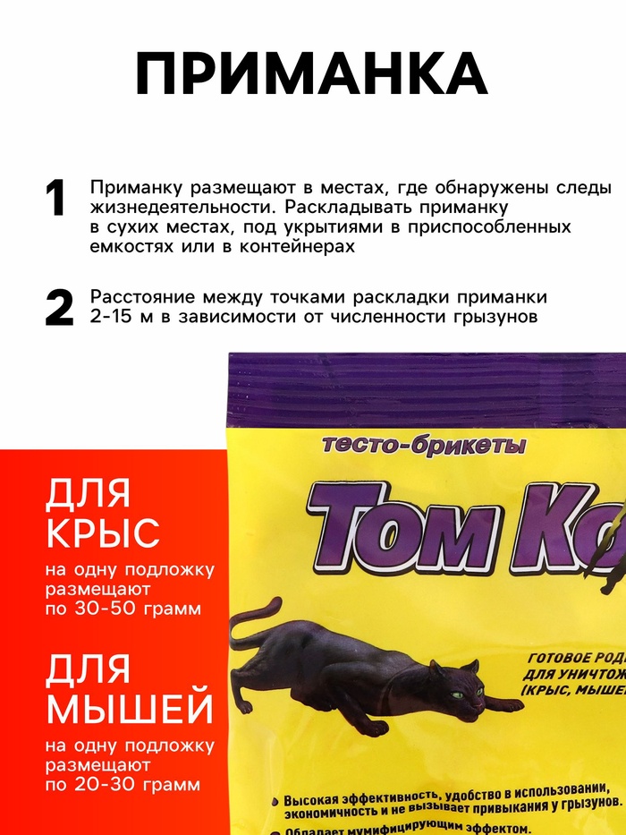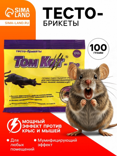 Освободите свое пространство от грызунов с помощью тесто-брикетов «Том Кот Бро». Безопасное и эффективное решение для каждого, кто стремится к чистоте и комфорту в своем доме или офисе.