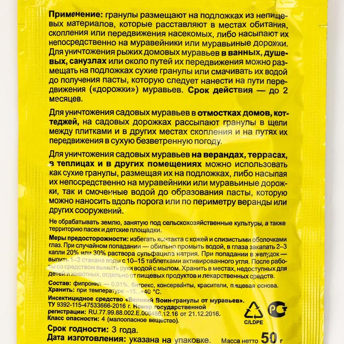Гранулы от муравьев «Великий Воин», цв. пакет, 50 г