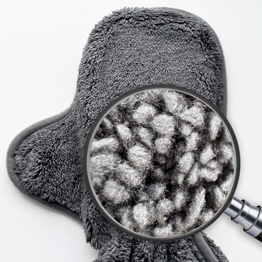 Новую структуру микроволокна специально пошили в виде рукавицы, чтобы быстро и удобно заниматься уборкой.