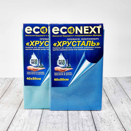 Салфетка "ХРУСТАЛЬ" EcoNext для стекла и зеркал (тонкая, как у "Белого кота"), Салфетка "ХРУСТАЛЬ"