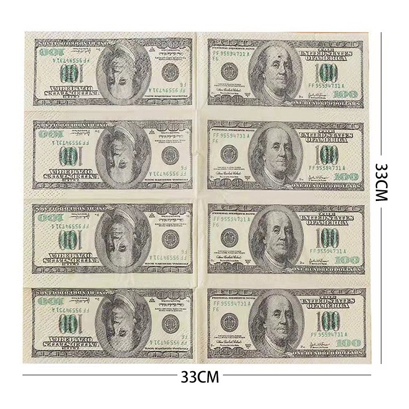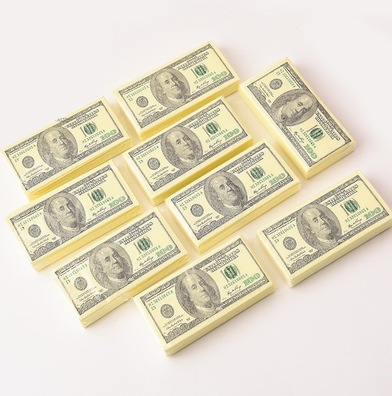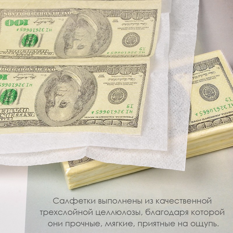 Салфетки сервировочные "ПАЧКА ДОЛЛАРОВ" 3 слоя, 10 штук, 33х33 см.