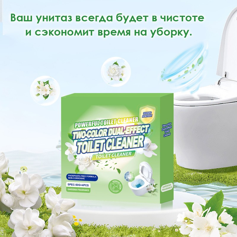 Способ применения: Просто бросьте одну таблетку в бачок унитаза, и она сама справится с задачей, обеспечивая длительное действие и приятный аромат.