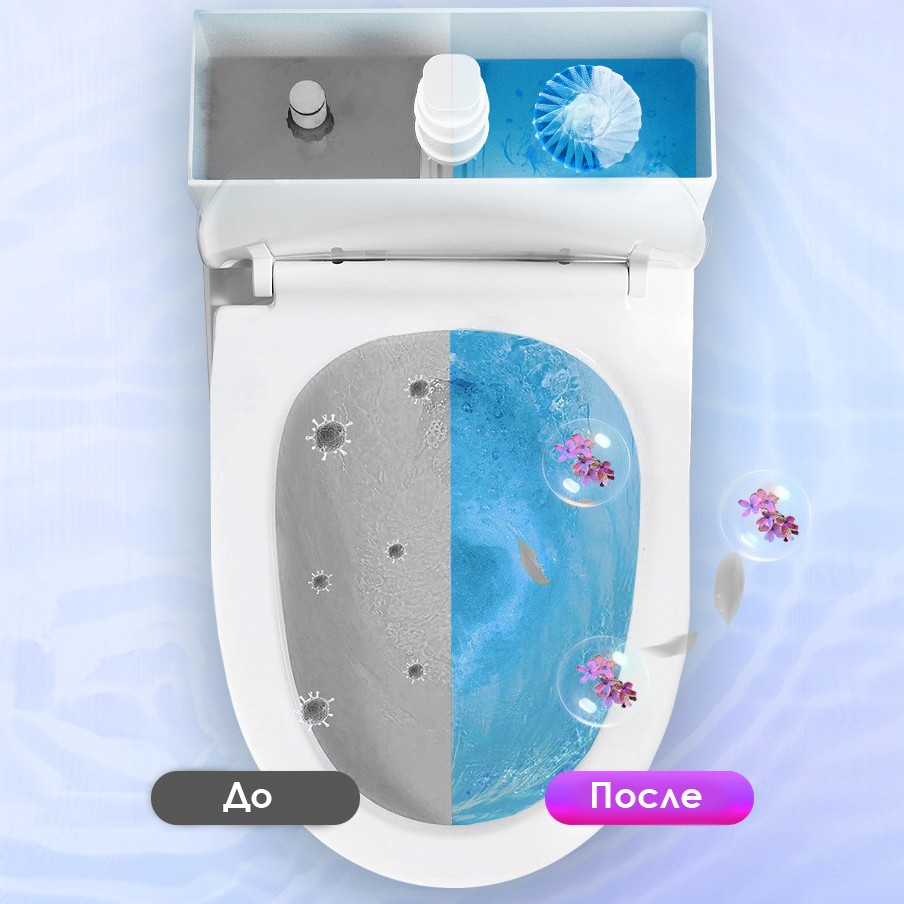 Способ применения: Просто бросьте одну таблетку в бачок унитаза, и она сама справится с задачей, обеспечивая длительное действие и приятный аромат.