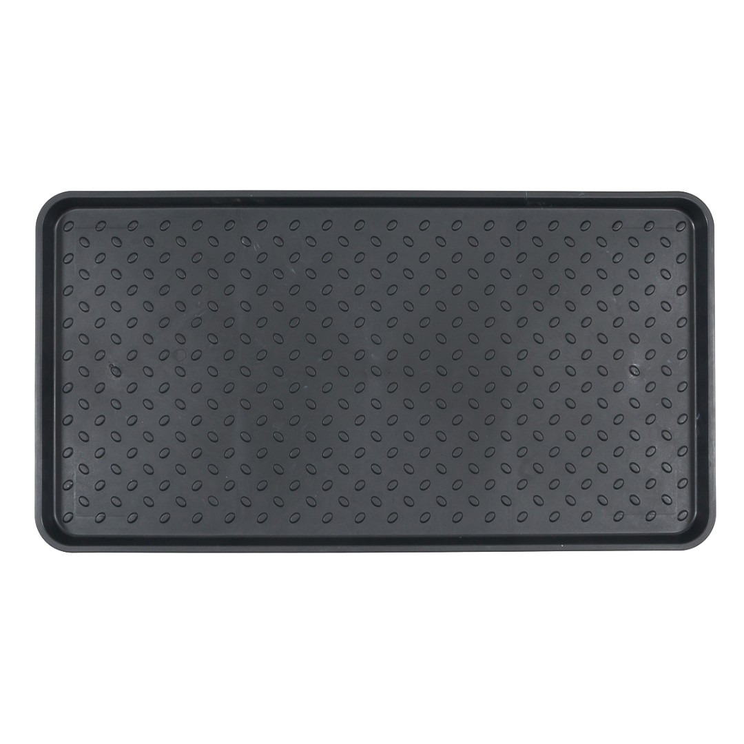Удобный и безопасныйподдон для обуви Интеркомсоздан из прочного пластика, устойчивого к постоянному использованию, воздействию грязи, соли и т.д. Внешнее покрытие этого поддона рифлёное, что позволяет уличной слякоти быстро стекать с подошв. Дополнительную защиту напольным покрытиям обеспечивают невысокие бортики. Само изделие целиком пластиковое, не боится постоянного воздействия слякоти, а также отличается приятным дизайном, в котором нет ничего лишнего. Изделие отличается существенными габаритами.• Такой поддон может использоваться в квартирах, офисах или подсобках.