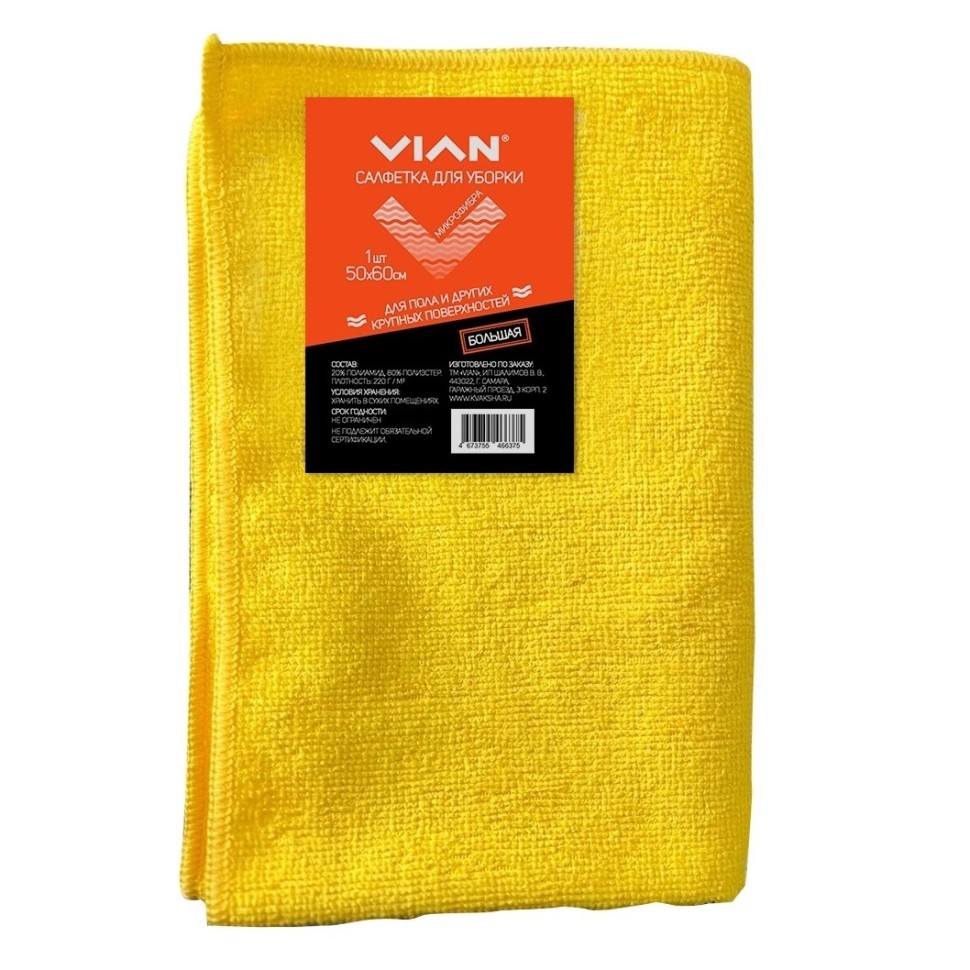 Салфетка большая для уборки VIAN, микрофибра, цвет произвольный, 50*60 см, 1 шт.