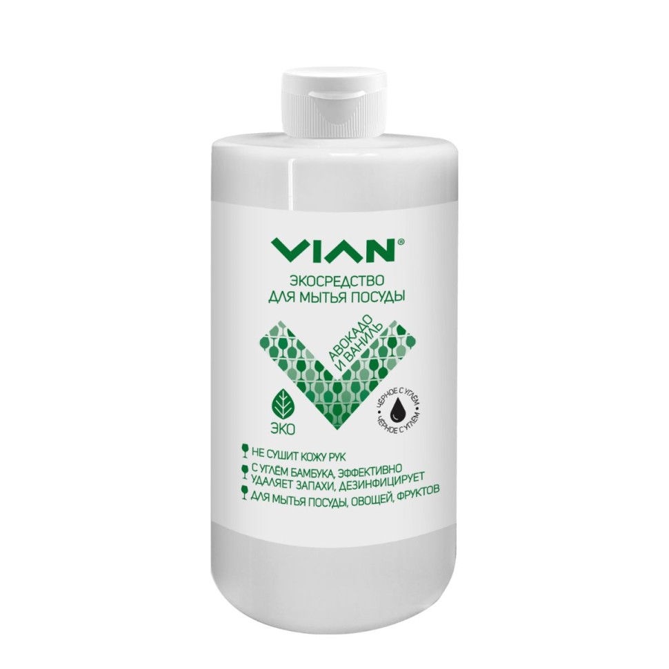 Средство для мытья посуды VIAN "АВОКАДО И ВАНИЛЬ" с углём бамбука, 450 г