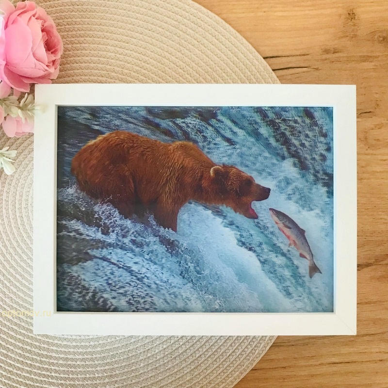 3Д картинка "Медведь у водопада" 14,5 х 19,5 см х М-0018, голографическая открытка с изображением медведя, без рамки