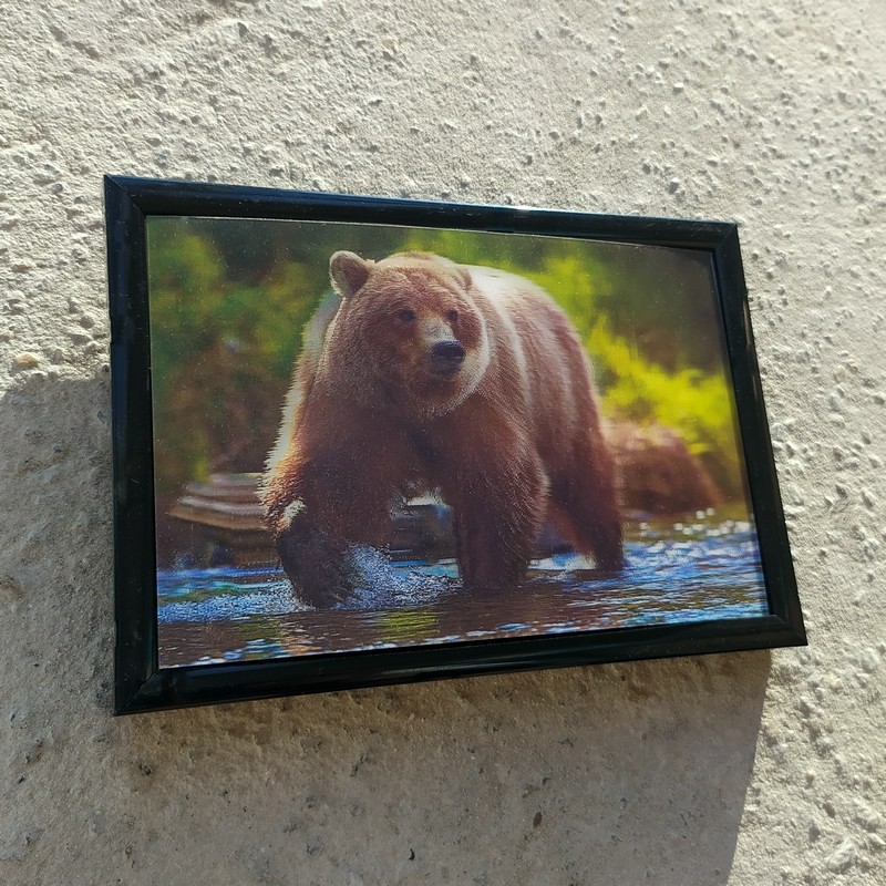 3Д картинка "Медведь на речке" 9,5 х 14,5 см х М-0017, голографическая открытка с изображением медведя, без рамки