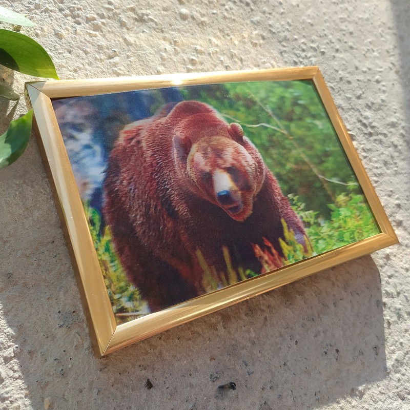 3Д картинка "Медведь в лесу" 9,5 х 14,5 см х М-0016, голографическая открытка с изображением медведя, без рамки