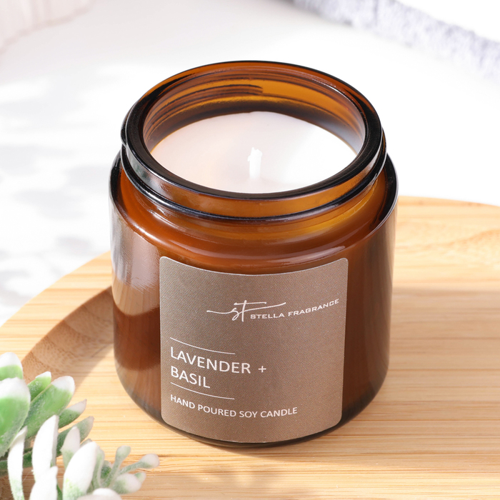 Ароматическая свеча в банке Lavender basil, соевый воск, 90 г, лаванда и базилик