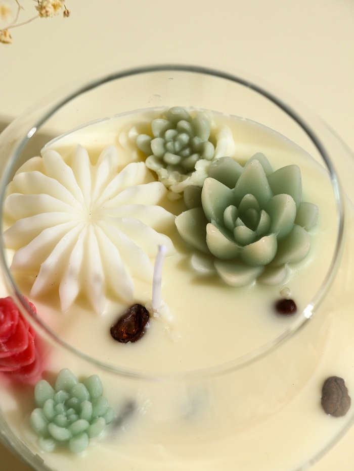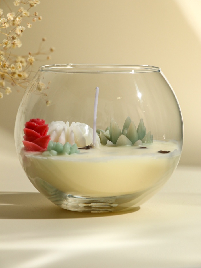 * Эстетичный подсвечник: дизайн с изображением суккулентов придаёт изделию натуральность и стиль.