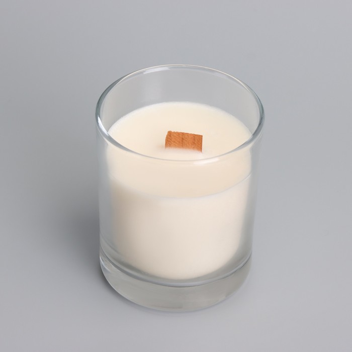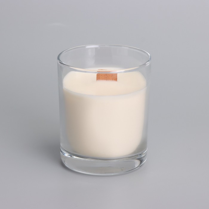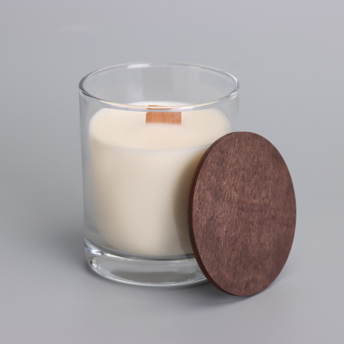 Ароматическая свеча в стакане с деревянным фитилем и крышкой «Кокосовый рай», из соевого воска, 110 г