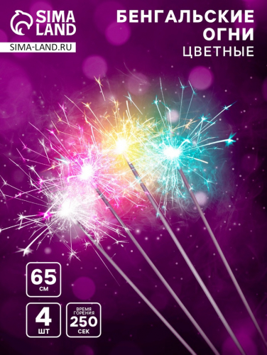 Бенгальские огни разноцветные «Цветопламенные», 4 шт., 65 см, горение 250 сек