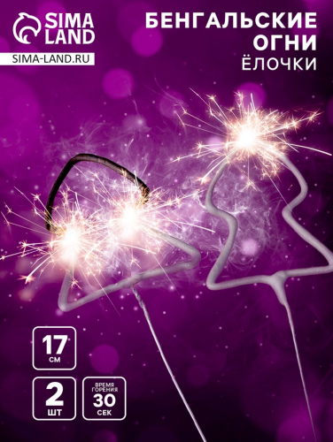Бенгальские огни золотые «Ёлочка» фигурные, 2 шт., 17 см, горение 30 сек.