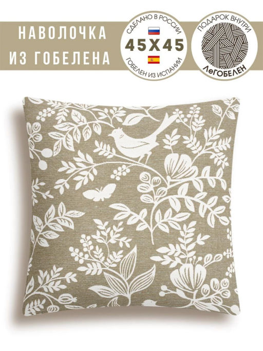 Берген птички крупные серый фон Наволочка 45х45 см 2310853 односторонняя