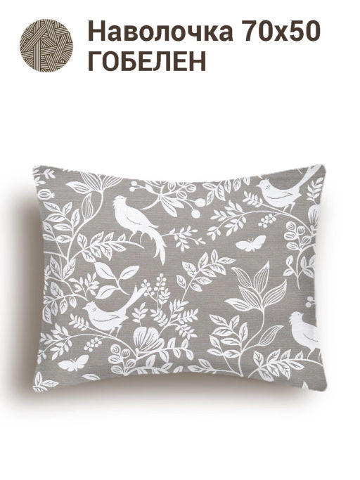 Берген птички крупные серый фон Наволочка 50х70 см 2518492 односторонняя
