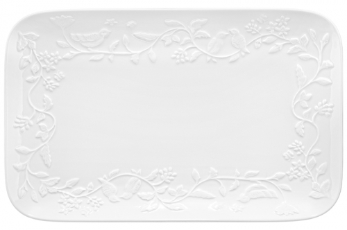 Сервировочное блюдо из серии «Птички на ветке» предназначено для подачи разнообразных угощений. Размер изделия – 36х23х3 см. Выполнено из высококачественного белого фарфора и украшено по кайме рельефным узором в виде тонких лиственных веточек, на которых расположились маленькие птички. Фарфор не впитывает цвет продуктов и надолго сохранит свою роскошную белизну. Благодаря лаконичному, но изысканному дизайну посуда впишется в любой интерьер. Подойдёт для подачи сыра и колбасы, а также рыбных и мясных деликатесов. Красиво подайте бутерброды с хлебом и сырной нарезкой и позавтракайте всей семьёй. Идеально подойдёт для сервировки закусок на большую компанию – суши, роллов и канапе, а также салатов, свежих фруктов и овощей. Наполните его десертами и сладостями, например, конфетами, печеньями, кусочками торта и пирога. Декоративное фарфоровое блюдо станет незаменимым элементом сервировки как в будни, так и на праздник. Не рекомендуется применять абразивные моющие средства. Можно использовать в микроволновой печи и посудомоечной машине. Поставляется в красивой картонной коробке – благодаря ей вам не потребуется дополнительная подарочная упаковка. Это идеальный подарок для хозяйки, ценящей не только практичность, но и стиль. Посуда из серии «Птички на ветке» преобразит вашу кухню и позволит собрать сервиз в едином стиле! /