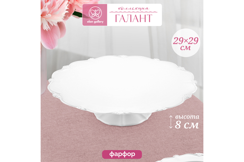 Тортовница на ножке из серии "Галант" предназначена для красивой подачи разнообразных кондитерских изделий. Размер – 29х29х8 см. Выполнена из высококачественного белого фарфора и украшена ажурной каймой. Фарфор не впитывает цвет продуктов и надолго сохранит свою нежную белизну. Изделие дополнит любой интерьер и привнесёт в ваш дом атмосферу французской утончённости. Используйте блюдо для подачи тортов, пряников, блинов и другой выпечки. Она также подойдёт для конфет, фруктов, пряников, мармелада, зефира и прочих сладостей. Благодаря вместительности и функциональности сервировочного блюда вы сможете предложить к столу множество разнообразных вариантов подачи бутербродов, канапе, суши, роллов, сыра и других закусок на празднике или вечеринке. Порадуйте себя и гостей изысканной сервировкой. Не рекомендуется применять абразивные моющие средства. Подойдёт для использования в посудомоечной машине и микроволновой печи. Поставляется в красивой картонной коробке – благодаря ей вам не потребуется дополнительная подарочная упаковка. Это идеальный подарок для хозяйки, ценящей не только практичность, но и стиль. Фарфоровая коллекция "Галант" позволит создать сервировку, как в лучших домах Парижа! /
