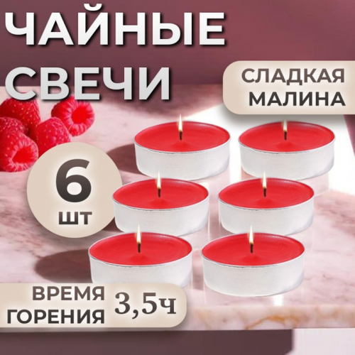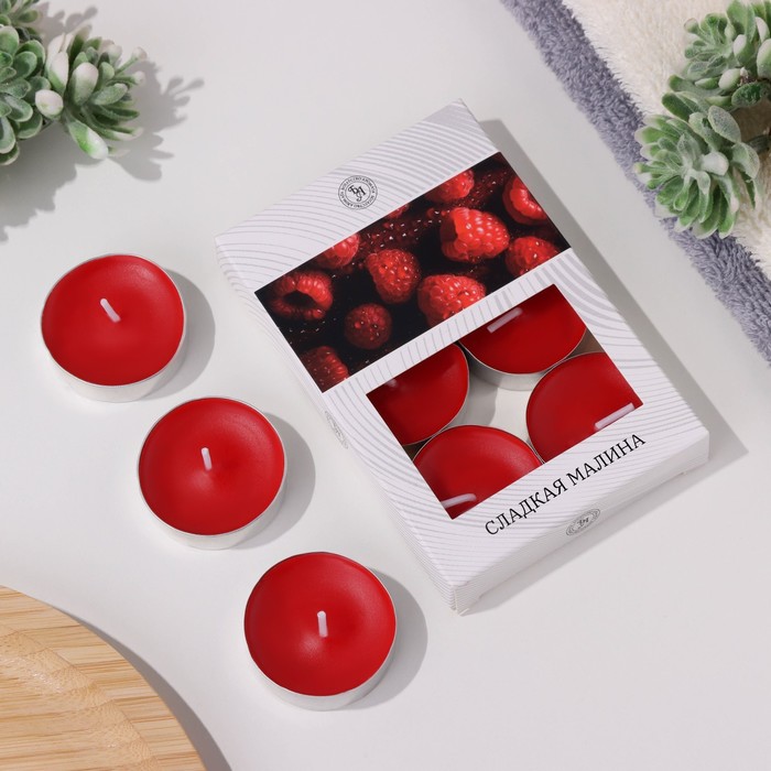 Набор свечей ароматических чайных «Сладкая малина», в подарочной коробке, 6 шт.