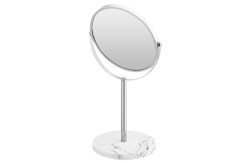 Двустороннее зеркало ELCASA "Хром" серебристого цвета на подставке имеет сторону со стандартным отражением и сторону с двукратным увеличением. Полный размер изделия – 18,5х15х34,5 см, диаметр зеркала – 17 см, длина ножки – 15 см. Ножка не регулируется по высоте. Дизайн подставки выполнен в виде рисунка, имитирующего мрамор. Декоративное круглое зеркало вращается на 360 градусов. Органайзер выполнен из металла. Настольное зеркало станет функциональным аксессуаром и стильным дополнением интерьера вашего дома. Компактное зеркальце можно разместить на туалетном столике, полке, тумбочке как в спальне, так и ванной комнате. Поставьте его рядом со всеми косметическими принадлежностями, чтобы все было под рукой. Для женщин косметическое зеркало станет удобным помощником при ежедневном туалете, нанесении макияжа или маски для лица. Мужчинам зеркало подойдет для бритья. Металлическое зеркало удобно использовать визажистам или гримёрам. Поставляется в стильной картонной упаковке. Крутящееся зеркало на ножке станет отличным подарком любой женщине или девочке: маме, сестре, лучшей подруге. Двустороннее зеркальце с увеличительной стороной сможет стать стильным декором интерьера вашего дома и поможет поддерживать красоту в течение дня!