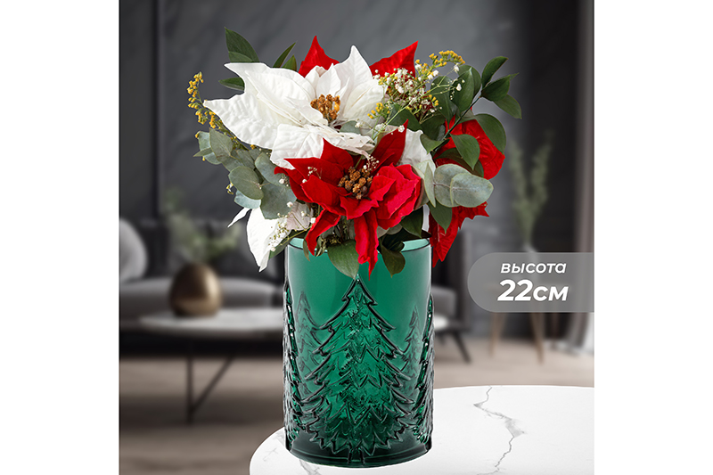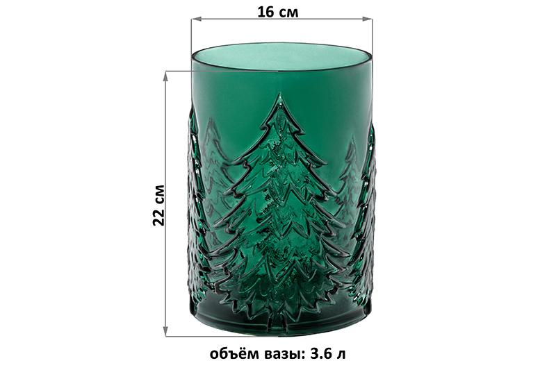 Ваза ручной выдувки от Elan Gallery послужит эстетичным и функциональным дополнением вашего интерьера. Размер ёмкости – 16х16х22 см, объём – 3,6 литра. Выполнена из стекла. Полупрозрачная тёмно-зелёная поверхность украшена большими рельефными ёлочками. Широкое утолщённое дно обеспечивает устойчивость вазы. Благодаря своей форме изделие вместит даже пышный букет или цветочную композицию. Подойдёт для букетов на длинных стеблях, а также декоративных ветвей. Изделие станет прекрасным элементом декора вашей гостиной, спальни или прихожей, наполнив дом атмосферой гармонии и уюта. Это отличный вариант для живых и искусственных веток и цветков, а также для сухоцветов. Поставьте в неё букет из свежих тюльпанов, пионов и роз. Расположите еловые веточки, чтобы привнести изысканность и праздничный дух в квартиру, студию или загородный дом. Изящная ваза добавит утончённости и красоты в оформление любого праздника или вечеринки. Стеклянная ёмкость прекрасно смотрится даже без наполнения. Не рекомендуется применять абразивные моющие средства. Не подходит для использования в посудомоечной машине. Поставляется в картонной коробке. Красивая ваза – отличный подарок для тех, кто ценит стиль и практичность. Она прекрасно дополнит ваш интерьер и станет ценным подарком для родных, близких и коллег. В коллекции бренда Элан Галерея есть всё необходимое для эстетичного преображения дома, офиса и дачи!
