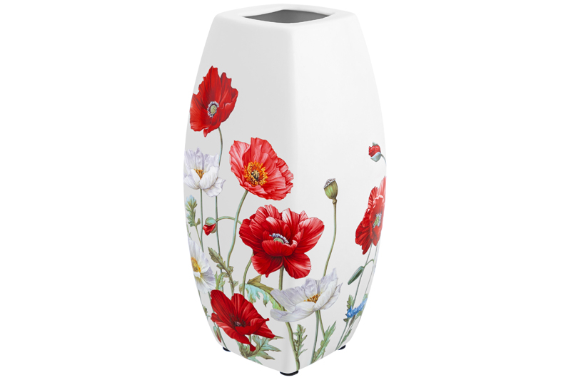 Ваза 1,5 л 11*11*21 см "Маки" квадрат, NEW BONE CHINA
