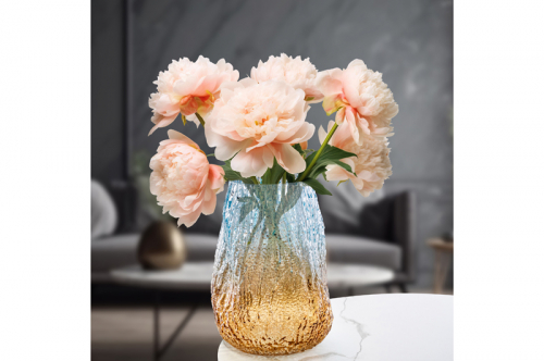 Интерьерная ваза ручной выдувки размером 20х20х30 см и объемом 6 литров выполнена из прочного стекла, окрашена градиентом в бежевом и голубом цвете. Высокая ваза подойдет для размещения букетов, искусственных цветов или сухоцветов. Эргономичная форма большой вазы подходит для цветов с длинными стеблями. Стеклянная ваза послужит стильным элементом декора для вашего дома. Поставьте в нее цветы и вазочка изящно подчеркнет красоту букета. Интерьерная ваза украсит комнату даже при использовании без наполнения. Разместите ее на столе или полке, чтобы создать в комнате стильный акцент. Декоративная ваза поставляется в прочной картонной упаковке. Красивая вазочка сможет стать настоящим украшением дома, или оригинальным подарком для мамы и сестры.