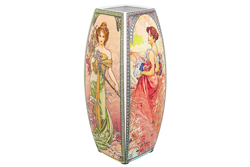 Настольная ваза Elan Gallery "Времена года" размером 11,5х11,5х25 см и объёмом 2 литра прямоугольной формы выполнена из фарфора нового поколения new bone china. Благодаря современным технологиям этот вид не уступает традиционному костяному фарфору в прочности, но гораздо экологичнее в производстве. В коллекции бренда Elan Gallery можно найти много красивой посуды и предметов декора с изображениями по мотивам шедевров мировой живописи! Высокая вазочка украшена репродукциями картин и панно чешского художника Альфонса Мухи. На каждой стороне фарфорового изделия изображены девушки, символизирующие лето, весну, зиму и осень. Яркий и узнаваемый сюжет удачно впишется в любой стиль интерьера, добавляя красоты и романтики. Интерьерная ваза подойдёт для размещения букетов, искусственных цветов или сухоцветов. Она послужит элементом декора вашего дома и поможет украсить его любыми растениями. Как красиво будут смотреться букеты из живых цветов и веточек на кухне и в любой комнате! Поставьте на видное место розы, тюльпаны или вербу для оформления интерьера в квартире. Интерьерная ваза украсит комнату даже без наполнения и подойдёт для создания декоративных композиций на журнальном столике или полке. Эргономичная форма позволит поставить в неё цветы с длинными стеблями. Не рекомендуется применять абразивные моющие средства. Поставляется в прочной красочной коробке. Станет шикарным подарком вашим близким на любой праздник. Благодаря стильной коробочке вам не понадобится дополнительная подарочная упаковка. Сделайте сюрприз ценителям искусства! Красивая фарфоровая ваза с рисунком станет украшением вашего дома и подчеркнёт красоту любого цветка. Ознакомьтесь с другими товарами для дома от Elan Gallery, здесь вы найдёте всё для создания домашнего уюта!