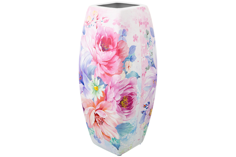 Ваза Elan Gallery "Акварель" размером 12,5х12,5х30 см и объёмом 3,15 литра прямоугольной формы выполнена из высококачественного фарфора нового поколения new bone china. Благодаря современным технологиям этот вид не уступает традиционному костяному фарфору в прозрачности, белизне и прочности, но при этом гораздо экологичнее в производстве. На вазочке изображены ромашки, пионы и лилии в розовых, белых и голубых тонах. Изображение с красивыми цветами напоминает нежный рисунок акварелью. Интерьерная ваза подойдёт для размещения букетов, искусственных цветов или сухоцветов. Стильная вазочка послужит элементом декора для вашего дома. В ней красиво будут смотреться букеты из любых цветов или веточек: роз, тюльпанов, вербы. Интерьерная ваза украсит комнату даже при использовании без наполнения. Эргономичная форма позволит поставить в неё цветы с длинными стеблями. Разместите декоративную вазу на столе или полке, чтобы создать в комнате стильный акцент. Большая настольная ваза поставляется в прочной подарочной упаковке. Станет шикарным подарком вашим близким: маме, бабушке, сестре или подруге на любой праздник. Красивая ваза с рисунком в розовых, белых и голубых тонах станет украшением вашего дома и подчеркнёт красоту любого цветка!
