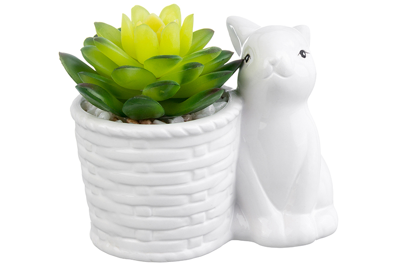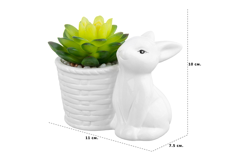 Декоративное кашпо «Зайчик с цветком» станет необычным домашним украшением. Выполнено из керамики в виде белого зайчика с горшочком. Размер изделия – 11х7,5х10 см. Поставляется в комплекте с несъёмным искусственным растением. Красивая фигурка в виде милого животного освежит ваше пространство и добавит ему природной чистоты. Разместите её на столе, полке или тумбочке, чтобы украсить помещение. Поставьте на рабочем месте или в офисе, чтобы добавить умиротворения даже самым тяжёлым будням. Настольная статуэтка в виде милого кролика найдёт место в любой комнате – в гостиной, спальне, кухне или прихожей. Добавьте вашему дому атмосферу маленького чуда. Не рекомендуется применять абразивные моющие средства. Поставляется в яркой картонной коробке – благодаря ей вам не потребуется дополнительная подарочная упаковка. В коллекции бренда Elan Gallery вы найдёте большой выбор декоративной посуды и сувениров – каждый обязательно подберёт вариант на свой вкус. Изделия станут чудесным подарком для родных, близких и коллег. Наполните пространство вокруг себя уютом и эстетикой!