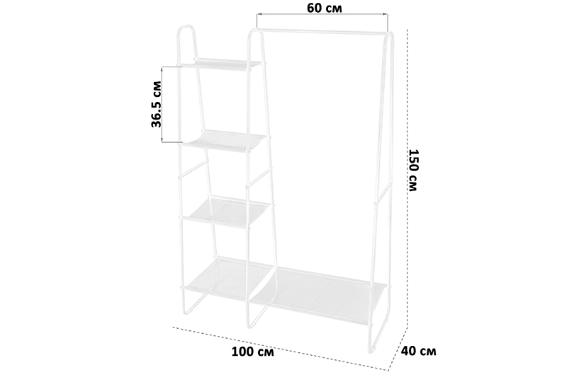 Напольная вешалка для одежды ELCASA "Белая" в виде стеллажа изготовлена из металла. Вместительный открытый шкаф поможет организовать хранение вашего гардероба. Металлический держатель 100х40х150 см имеет перекладину для вешалок с платьями, костюмов, брюк или верхней одежды и пять полок. Длина перекладины – 60 см. Расстояние между полками – 36,5 см. Максимальная нагрузка на вешалку – 10 кг, на каждую полку – 2 кг. Мебель эстетично выглядит и хорошо впишется в любой стиль интерьера: от скандинавского до лофт. Подойдёт для любых комнат в доме: спальни, детской или гостиной. Поставьте компактный стеллаж в прихожей или коридоре, чтобы использовать для верхней одежды. Полки можно приспособить под ящики с обувью или аксессуары: сумки, перчатки, ремни, шапки или кепки. На полках этажерки можно разместить джинсы, футболки или свитера. Нижнюю полочку можно использовать как обувницу. Большой нижний ярус подходит не только для обуви, но и хранения кофров, органайзеров и коробок с вещами или игрушками. Полочки сборного стеллажа можно использовать для хранения полотенец. Универсальная костюмная вешалка подойдёт для офиса или дачи, поставьте её на пол к стене и вешайте пиджаки и куртки. Напольный многоуровневый шкаф позволит организовать порядок в любом пространстве. В комплекте имеются все необходимые детали для сборки шкафчика. Поставляется в картонной коробке. Большая стойка - вешалка с 5 полочками поможет организовать удобную гардеробную систему для хранения вещей в вашем доме и поможет создать порядок в любом пространстве.