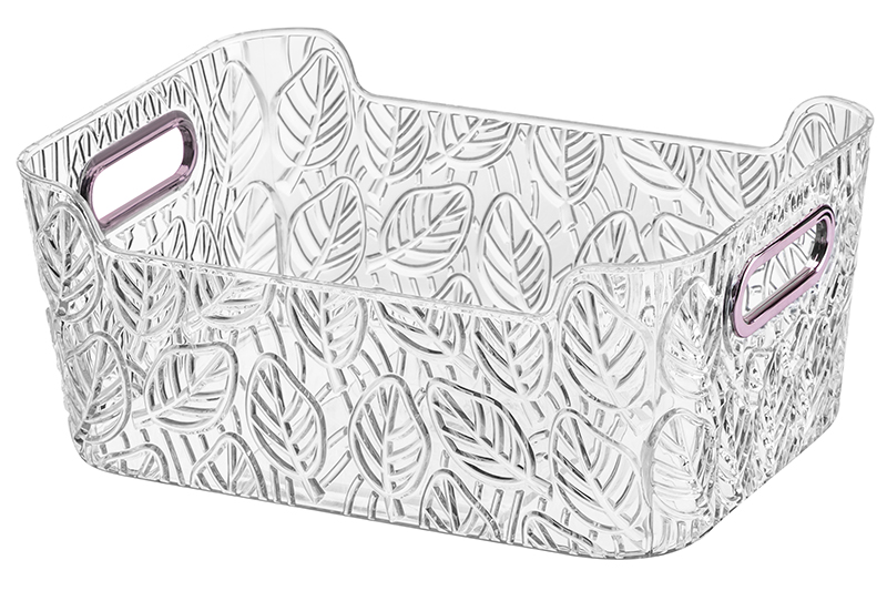 Органайзер для хранения от ELCASA поможет вам эстетично и эффектно поддерживать в доме порядок! Размер изделия – 25х17,5х10,7 см, размер дна – 22,5х15,5 см. Изготовлен из пластика. Прозрачная ёмкость украшена рельефным лиственным узором и оснащена металлическими ручками лилового цвета. Благодаря лаконичному дизайну она гармонично дополнит интерьер любой комнаты и найдёт место в разных частях вашего дома. В спальне заполните изделие ватными дисками, ушными палочками или другими средствами уходовой косметики. В прихожей используйте её для ключей, носовых платков или перчаток. На кухне контейнер позволит компактно хранить наборы для специй и приправ, салфетки или столовые принадлежности. Используйте настольный ящик в качестве офисного аксессуара, чтобы держать под рукой необходимые документы или канцелярию. Разместите его на туалетном столике для флаконов с духами, лаков для ногтей или предметов декоративной косметики. Практичные ручки облегчат переноску изделия. Не рекомендуется применять абразивные моющие средства. Не подходит для использования в посудомоечной машине. В коллекции бренда ЭЛЬКАСА представлены разнообразные товары для дома, которые привнесут в ваш быт практичности и стиля.