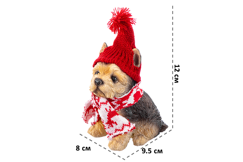Декоративная фигурка Elan Gallery "Рождественский щенок йорк" размером 9,5х8х12 см способна преобразить любое помещение и привнести в него праздничную атмосферу. Собачка наряжена в вязаную шапочку и шарфик. Красная шапочка не снимается, красно-белый шарф можно снять. Статуэтка выполнена из полирезина. Полирезин – это современный материал, который славится своей лёгкостью, устойчивостью к влаге и солнечным лучам. Он не выделяет вредных веществ и не имеет запаха. Полирезин легко поддается обработке, поэтому изделия из него славятся своей реалистичностью и проработанными деталями. Привнесите эстетику в интерьер своей квартиры с помощью красивых мелочей! Настольная фигурка станет оригинальным элементом декора и принесёт в дом радость и уют. Она украсит интерьер гостиной или спальни и создаст тёплую атмосферу. Превратите вашу кухню или дачу в уютное место благодаря этому сувениру! Вы можете разместить игрушку на полке, столе или создать декоративную композицию вместе с другими украшениями на камине или под новогодней ёлкой. Она поможет украсить ваше рабочее место в офисе и сделает кабинет уютнее! Не рекомендуется применять абразивные моющие средства. В коллекции бренда Элан Галерея представлено много товаров для дома, предметов декора и сувенирной продукции для создания уюта в любом пространстве. Пёсик станет чудесным подарком на Новый год, Рождество и любой другой праздник. Фигуру забавного животного можно подарить на долгую память взрослым и детям. Пусть забавный сюрприз станет символом вашей дружбы и создаст хорошее настроение всем вокруг!