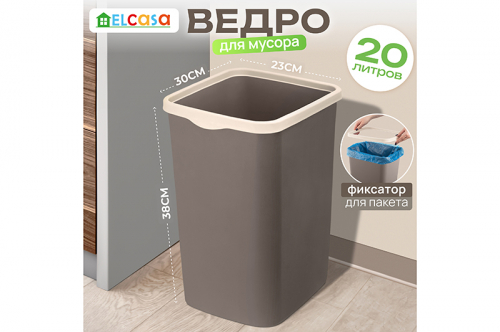 Ведро для мусора с фиксатором ELCASA "Тандем" размером 30х23,2х38,3 см и объёмом 20 литров поможет поддерживать чистоту в вашем доме, офисе или на улице. Мусорное ведро выполнено из полипропилена в расцветке серый металлик с чёрным фиксатором. Этот вид пластика считается наиболее безопасным, так как не содержит бисфенол А и не выделяет вредных веществ. Мусорное ведро прямоугольной формы можно разместить в ванной комнате, туалете или на кухне. Удобный держатель в виде ободка помогает зафиксировать мусорный пакет на ведре и не даёт ему сползать. Поставьте урну из пластика на пол возле раковины, стола или в хозяйственный шкаф. Высокое пластиковое ведёрко можно использовать как офисное – под ненужные бумаги. Большая ёмкость обеспечивает достаточное пространство для хранения мусора любого вида. Можно приспособить на даче как уличную мусорку. Пластиковые мусорные вёдра выполнены в универсальном дизайне и хорошо сочетаются друг с другом. Можно использовать несколько баков из пластика серии "Тандем" для организации раздельной системы сбора мусора. Корзина с фиксатором станет незаменимым помощником для поддержания чистоты как в доме, так и на улице и поможет организовать порядок в любом пространстве.