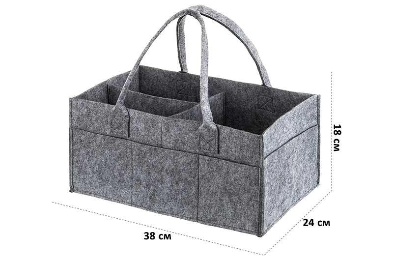 Сумка серого цвета с ручками и кармашками от бренда ELCASA – это универсальный органайзер для хранения, переноски или перевозки вещей. Забудьте про скучные коробки и контейнеры! Прямоугольная корзинка выполнена из войлока. Размер изделия – 38х24х18 см. Плотный материал не мнётся и хорошо держит форму. Две прочные ручки помогут удобно переносить и перевозить любые предметы. Маленькие карманы снаружи позволяют разложить в них любые мелочи: зарядку для телефона, ножницы и другую канцелярию. Войлоковая корзина имеет 8 кармашков снаружи: по 3 на каждой стороне и 2 боковых. Внутри есть несъёмные разделители, которые образуют 3 секции: одну большую и две поменьше. Сумка-корзинка из войлоковой ткани подходит для хранения в шкафу одежды, белья и полотенец. В большое отделение можно убрать свернутый плед, в небольшие ячейки разложить аксессуары и бутылки с напитками, чтобы взять на пикник или прогулку. Подходит для любых хозяйственных нужд, в том числе для переноски продуктов. В детской комнате можно использовать в роли ящика для игрушек и книг, а также для подгузников малыша. Разложите в отделения памперсы, бутылочки и салфетки. Удобная система с отделениями позволяет держать всё необходимое на пеленальном столе, создавая удобную зону ухода за новорожденным. Можно использовать как кофр для хранения ремней, шапок и перчаток в гардеробной, либо как дорожный органайзер для автомобиля в путешествии и при переезде. В коробе с ручками удобно перевозить любые принадлежности на дачу, а также использовать для хранения в машине. Станет интерьерной коробочкой для эстетичного хранения предметов рукоделия, пряжи и вязания у вас дома. Сложите в неё всё для вышивки, шитья, творчества и хобби. Не использовать абразивные моющие средства. Корзина-сумка станет практичным подарком для всех, кто любит порядок. Такой стильный аксессуар украсит любую комнату и поможет создать удобную систему хранения.