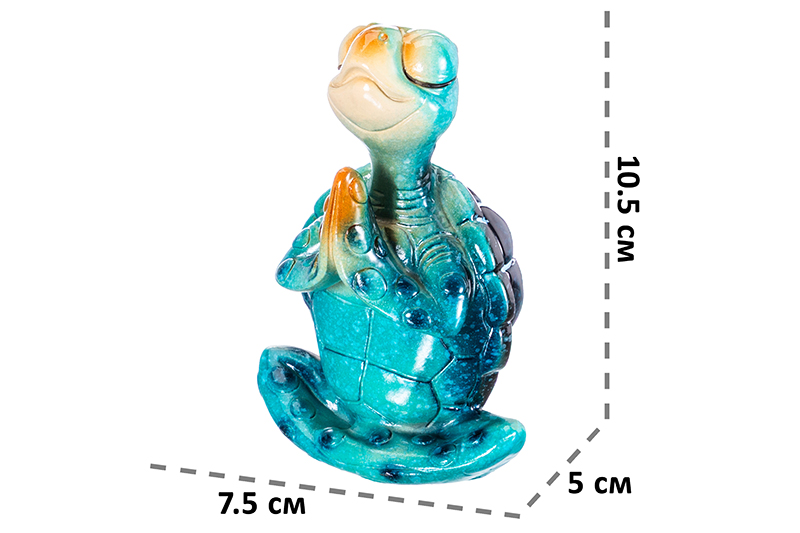Декоративная фигурка Elan Gallery "Голубая черепашка в медитации" размером 7,5х5х10,5 см способна преобразить любое помещение. Статуэтка в виде забавной бирюзовой черепахи выполнена из полирезина и покрыта глазурью. Полирезин – это современный материал, который славится своей лёгкостью, устойчивостью к влаге и солнечным лучам. Он не выделяет вредных веществ и не имеет запаха. Полирезин легко поддается обработке, поэтому изделия из него славятся своей реалистичностью и проработанными деталями. Панцирь черепахи имеет насыщенный окрас, напоминающий поверхность сине-голубого камня. За счёт окраса и гладкой глазурованной поверхности создаётся ассоциация с бирюзой, что придаёт изделию из полирезина особого благородства. Привнесите эстетику в интерьер своей квартиры с помощью красивых мелочей! Умиротворённая черепашка медитирует, расслабленно прикрыв веки. Она станет оригинальным элементом декора и принесёт в дом гармонию и уют. Настольная фигурка украсит интерьер гостиной или спальни и создаст тёплую атмосферу. Превратите вашу кухню или дачу в уютное место благодаря этому сувениру! Вы можете разместить игрушку на полке, столе или создать декоративную композицию вместе с другими украшениями на камине. Она поможет украсить ваше рабочее место в офисе и сделает кабинет уютнее! Не рекомендуется применять абразивные моющие средства. В коллекции бренда Элан Галерея представлено много товаров для дома, предметов декора и сувенирной продукции для создания уюта в любом пространстве. Статуэтки милых животных – это всегда приятный сюрприз для мальчика или девочки. Такой сувенир уместен для любого возраста. Фигура станет чудесным подарком на долгую память в честь любого праздника. Пусть милая фигурка станет символом вашей дружбы и создаст хорошее настроение взрослым и детям!