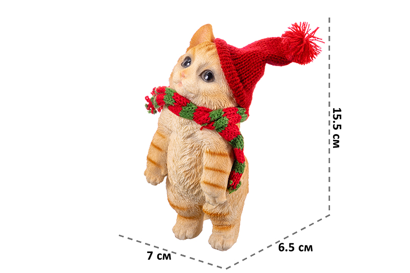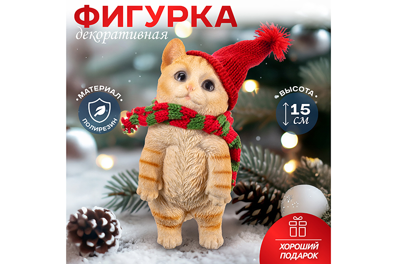 Декоративная фигурка Elan Gallery "Рождественский котёнок" размером 7х6,5х15,5 см способна преобразить любое помещение и привнести в него праздничную атмосферу. Котик наряжен в вязаную шапочку и шарфик. Красная шапочка не снимается, красно-зелёный шарф можно снять. Статуэтка выполнена из полирезина. Полирезин – это современный материал, который славится своей лёгкостью, устойчивостью к влаге и солнечным лучам. Он не выделяет вредных веществ и не имеет запаха. Полирезин легко поддается обработке, поэтому изделия из него славятся своей реалистичностью и проработанными деталями. Привнесите эстетику в интерьер своей квартиры с помощью красивых мелочей! Настольная фигурка станет оригинальным элементом декора и принесёт в дом радость и уют. Она украсит интерьер гостиной или спальни и создаст тёплую атмосферу. Превратите вашу кухню или дачу в уютное место благодаря этому сувениру! Вы можете разместить игрушку на полке, столе или создать декоративную композицию вместе с другими украшениями на камине или под новогодней ёлкой. Она поможет украсить ваше рабочее место в офисе и сделает кабинет уютнее! Не рекомендуется применять абразивные моющие средства. В коллекции бренда Элан Галерея представлено много товаров для дома, предметов декора и сувенирной продукции для создания уюта в любом пространстве. Станет чудесным подарком на Новый год, Рождество и любой другой праздник. Фигуру забавного животного можно подарить на долгую память взрослым и детям. Пусть забавный сюрприз станет символом вашей дружбы и создаст хорошее настроение всем вокруг!