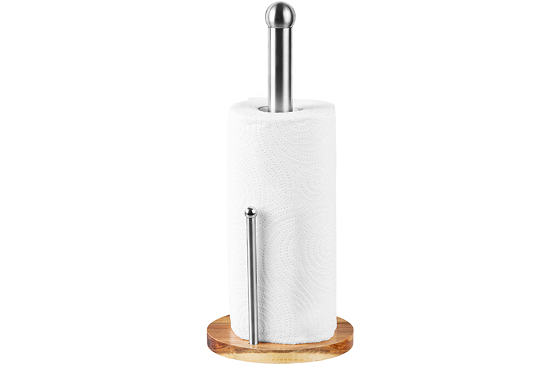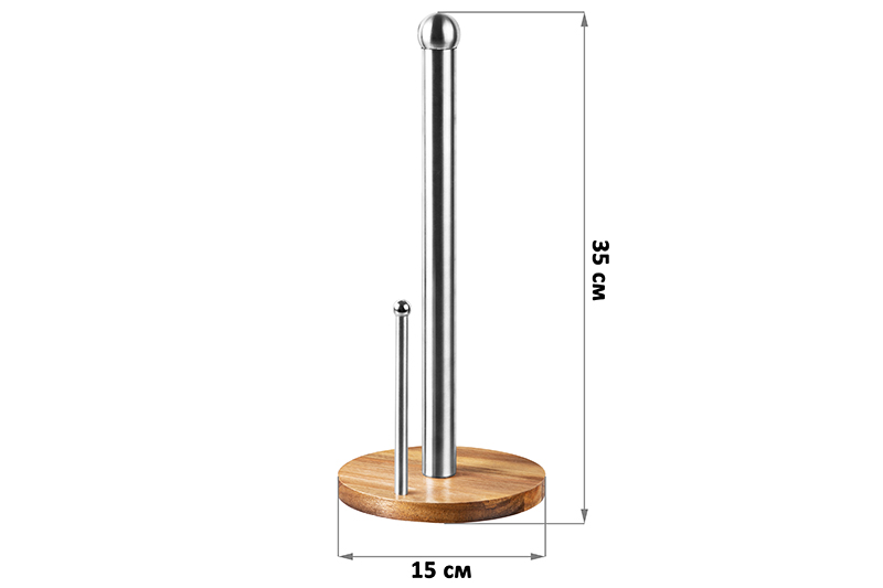Кухонный держатель для бумажных полотенец бренда El Casa выполнен из металла и натурального дерева. Размер держателя 15х15х35 см. Такая подставка подходит под стандартный размер рулонов. Держатель имеет прочную конструкцию, удобен при использовании. Вертикальная стойка под рулонные салфетки эстетично выглядит и хорошо дополняет интерьер. Полотенцедержатель поможет разместить одноразовые салфетки рядом с раковиной, на столе, полке. Для избежания скольжения и удобства перемещения держатель имеет прорезиненные ножки. Аксессуар для хранения одноразовых кухонных полотенец удивит вас своей многофункциональностью и долго прослужит. Не храните в контакте с водой или в помещении с повышенной влажностью. Не рекомендуем мыть в ПММ или абразивными моющими средствами, нельзя замачивать. Металлический органайзер поможет в организации порядка на кухне и станет практичным подарком для ваших родных и близких.