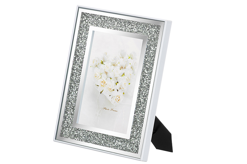 Настольная фоторамка от бренда ELCASA "Бриллиант" рассчитана на фото форматом 10х15 см. Размер рамочки – 19,5х14,5х1,5 см. Прямоугольный каркас белого цвета изготовлен из пластика, вся передняя часть выполнена из стекла. Чтобы открыть стеклянную рамочку, необходимо вытащить с обратной стороны картонную вставку. Рамка устанавливается на столик благодаря устойчивой картонной подставке с обратной стороны. За стеклянной поверхностью имеет блестящий серебристый декор, напоминающий алмазную россыпь. Изделие украшено контрастными серебряными линиями, образующими прямоугольники. Рамочка станет стильным предметом декора и позволит разместить ваши свадебные или семейные фотографии. Можно использовать как оправу под открытки, вышивки крестиком, маленькие постеры или детские рисунки. Разместите оригинальную рамку со стразами на столе или полке в спальне, гостиной, прихожей или любой другой комнате, чтобы наполнить дом теплом и уютом. Не рекомендуется применять абразивные моющие средства. Станет чудесным подарком на любой праздник. Фоторамка для семейных фото – прекрасный сюрприз для влюбленных на свадьбу или годовщину. Это отличное решение, чтобы украсить дом фотографиями, которые напоминают о самых светлых моментах. Декоративная рама для фото украсит интерьер любого пространства и наполнит его теплом приятных воспоминаний!