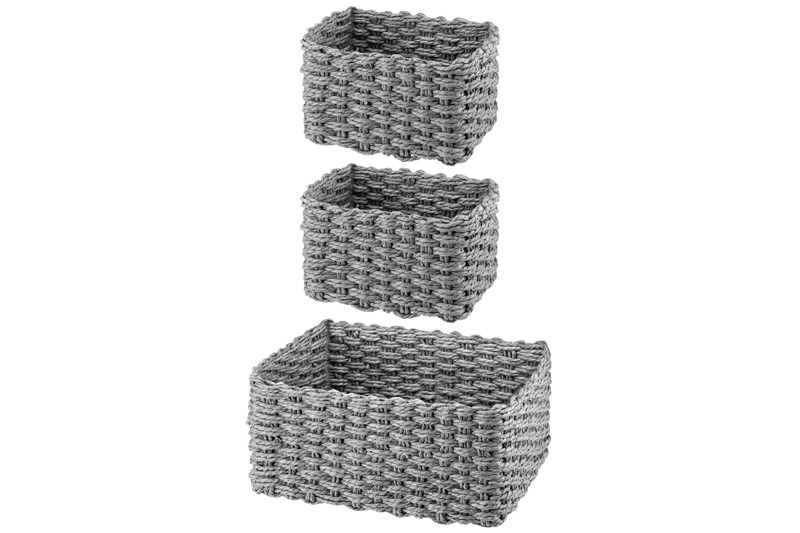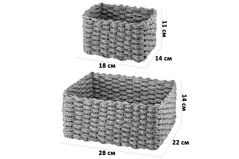 Набор из трёх плетёных корзинок серого цвета (1 корзина – 28х22х14 см, 2 корзины – 18х14х11 см) подойдет для размещения в прихожей, гостиной, спальне или любой другой комнате. Коробка имеет прочные стенки и дно. Плетёный дизайн придает корзинам элегантный вид, что делает их не только функциональным, но и привлекательным элементом декора для вашего интерьера. Различие органайзеров по размеру позволяет разделить аксессуары на категории и облегчить их поиск. Корзиночки для хранения помогут держать все на своих местах и создать уют в любой комнате. Разместите органайзер на полке в шкафу для хранения шапок, перчаток, белья, носков. В прихожей корзинка пригодится для очков, ключей, визиток, канцелярии и других мелочей. Можно использовать коробочки для создания дома декоративных композиций из искусственных цветов. Универсальные ящички станут незаменимыми помощниками для хранения косметики, украшений, принадлежностей для маникюра, лекарств и позволят сохранить их в безупречном состоянии. На кухне будет удобно складывать в интерьерный ящик упаковки с чаем или пакеты с конфетами и сладостями. Подарите органайзеры на любой праздник маме или бабушке, чтобы они смогли разместить в одном месте предметы для рукоделия, пряжи и вязания. Набор из трех плетёных корзин – это практичное, стильное и эстетически приятное решение для организации хранения ваших аксессуаров. Доступ к вашим вещам станет простым и удобным!