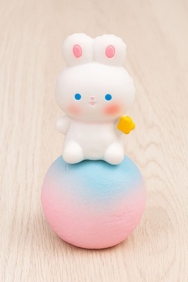 Милая фигурка зайки с жёлтой звёздочкой, уютно устроившейся на нежной планете в пастельных тонах, создаёт атмосферу спокойствия и уюта.