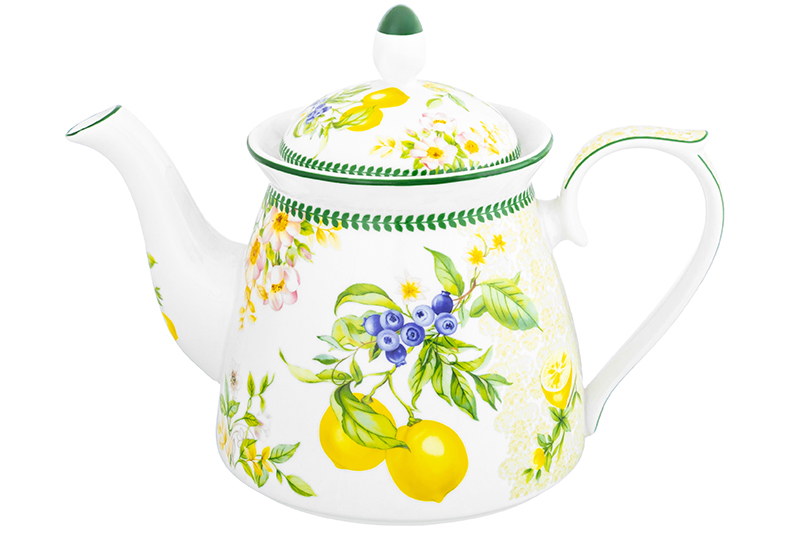 Чайник из серии «Лимоны» станет стильным дополнением вашей кухни. Размер изделия – 23х13х17 см, объём – 1 литр. Выполнен из фарфора new bone china, сочетающего в себе изящность и высокую прочность. За счёт гладкости изделия легко отмываются, поэтому долго сохраняют привлекательный вид и практичны в использовании. Плотная структура материала позволяет посуде дольше сохранять температуру блюд и напитков. От других видов костяного фарфора new bone china отличается большей экологичностью в производстве. Фарфоровая посуда с ярким рисунком в виде лимонов станет изящным дополнением интерьера любой кухни или столовой. Подходит для ежедневного заваривания чая и станет незаменимым элементом организации любого чаепития. Насладитесь любимым напитком и удивите гостей красивой сервировкой как в будни, так и на праздник. Благодаря фильтру в виде маленьких отверстий в стеночке вы можете наслаждаться ароматной заваркой без попадания мелких чаинок. С обратной стороны фарфоровой крышечки имеется язычок, благодаря которому она будет хорошо держаться на чайнике. Не рекомендуется применять абразивные моющие средства. Подходит для использования в посудомоечной машине. Поставляется в красивой картонной коробке – благодаря ей вам не потребуется дополнительная подарочная упаковка. Чайник станет оригинальным подарком для любой хозяйки и незаменимым элементом сервировочного инвентаря в вашем доме! /