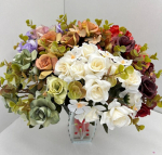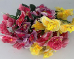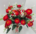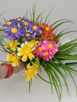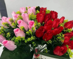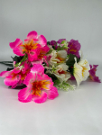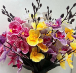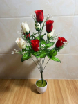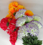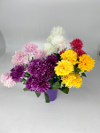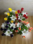 Осталась довольна, только обратите внимание, что на картинке несколько букетов, поэтому смотрится богаче. Брала на могилу, по два букета, смотрится отлично. Цветочки бархатистые. Одна веточка смотрится жидковатл. Но это на мой взгляд. Две в самый раз.