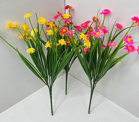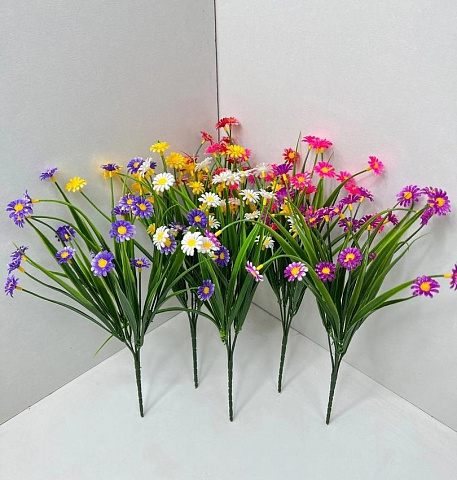 Цветы искусственные декоративные Ромашки (5 веток 15 цветков) 35 см пластик