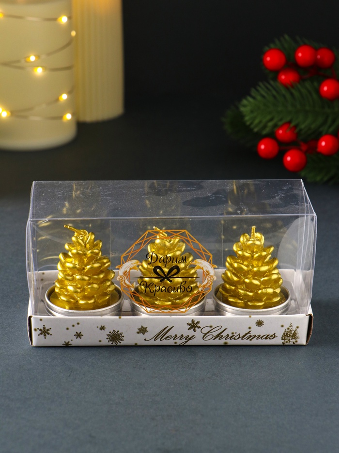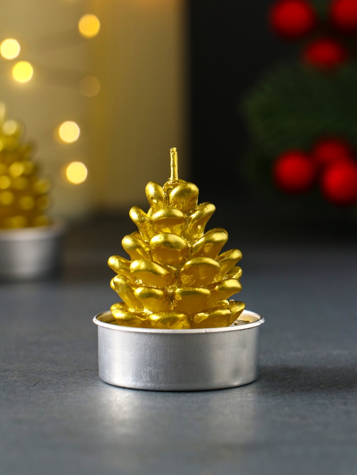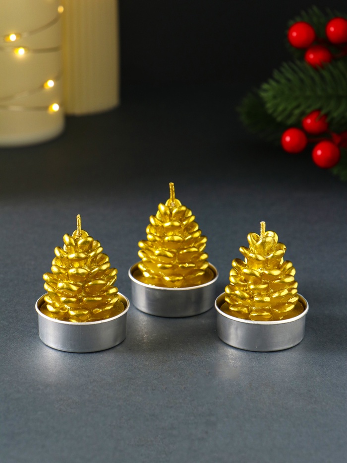 Набор свечей новогодних «Шишка золотая», 4×6 см, 3 шт.